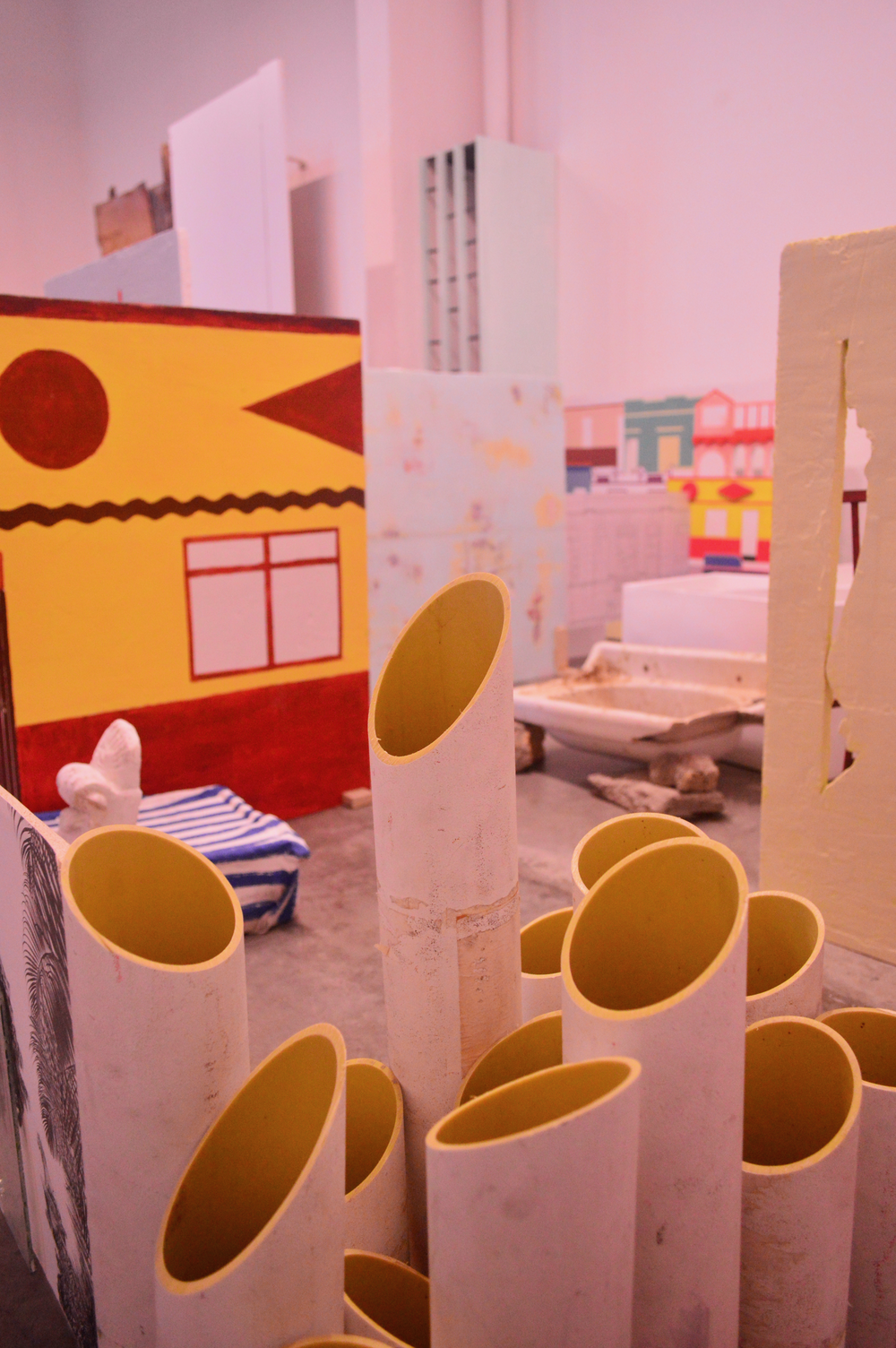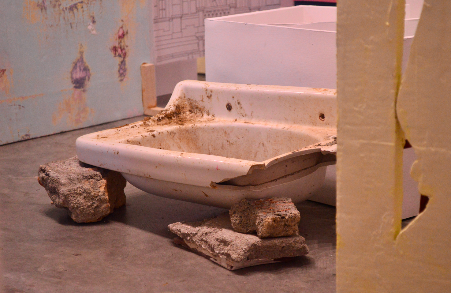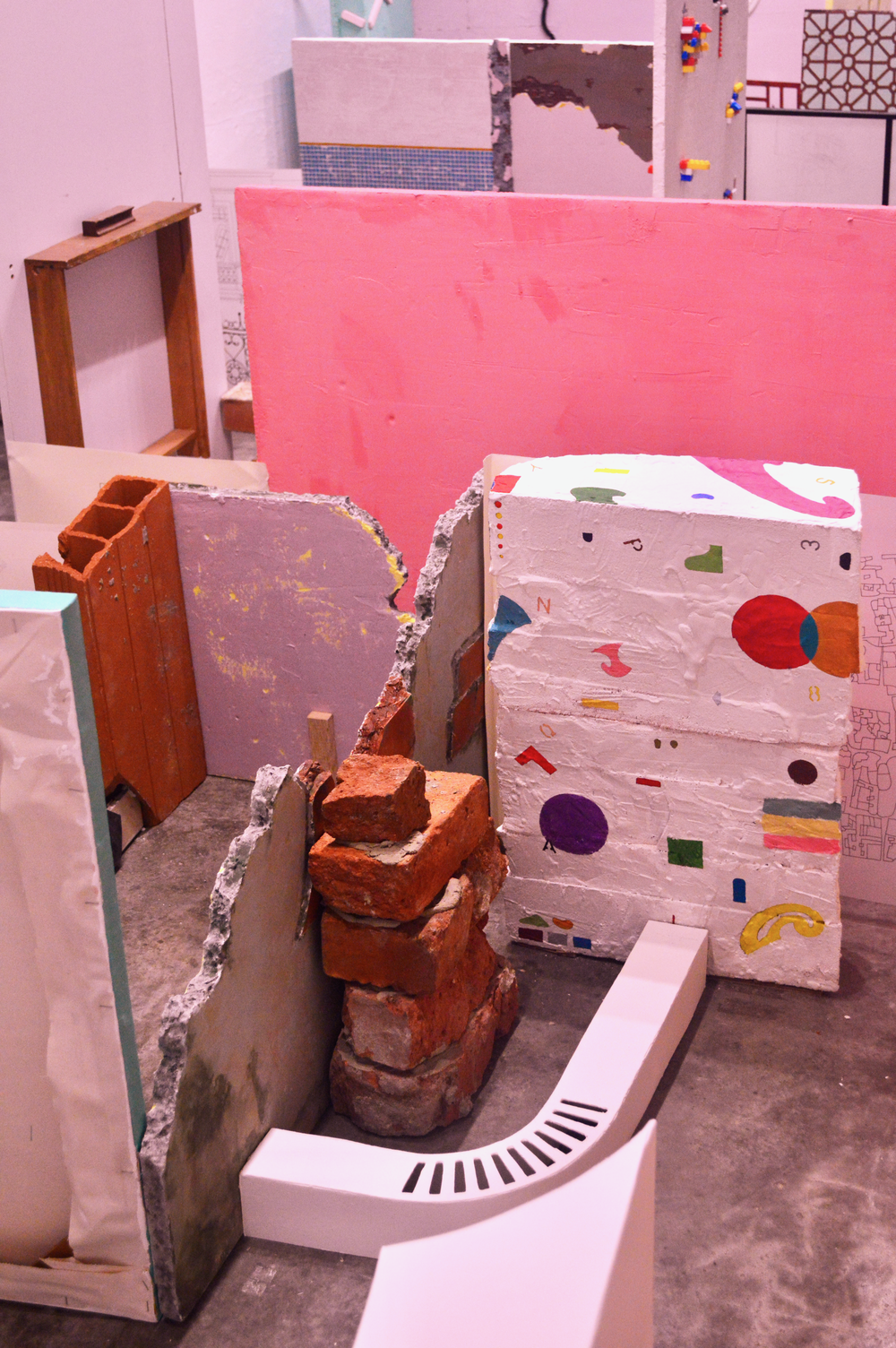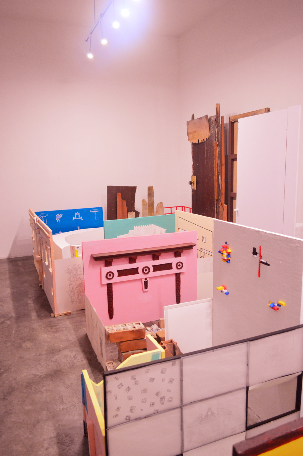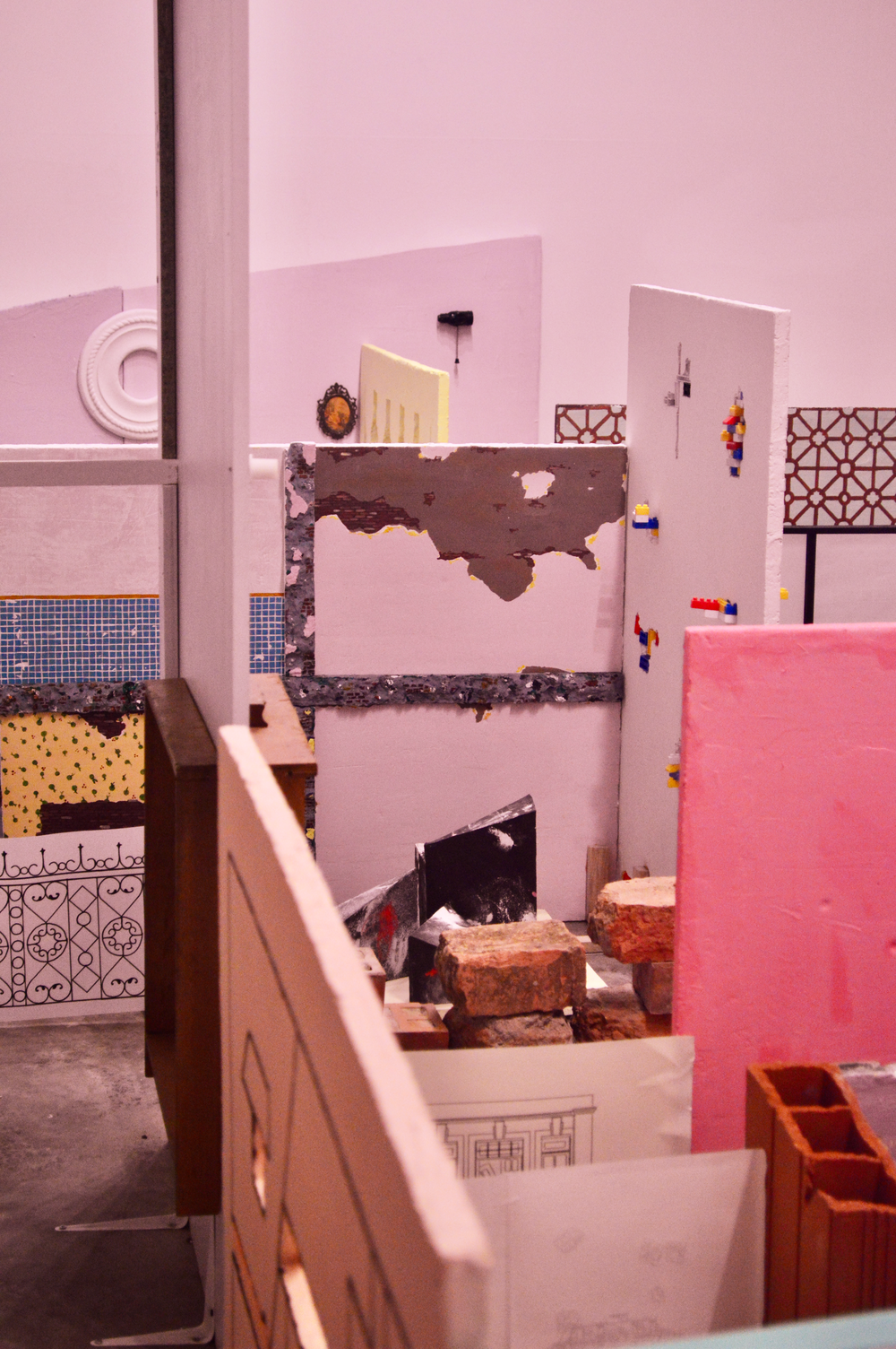 El ejercicio propuesto, dibujar la ciudad, recorrer la urbe como modelo, plantea un particular concepto de dibujo que copia, calca, refleja, trasluce, traza, truca, cae y vuelve a rayar, sobre un desfile de papelillos. Y en cualquier momento el dibujo se disfraza de estructura, cerramiento, detalle o, incluso, de capricho; el dibujo está aquí y allá, aparece y desaparece, el dibujo es encantología que se disuelve en escombro, que a su vez, mediante este mismo procedimiento, se materializa en espectro. La piedra y el papel construyen sueños que en la vida diurna se representan como fachadas vacías interceptadas por la sinuosidad de telares verdes que ondean como banderas de un territorio que nos invita y nos repela.